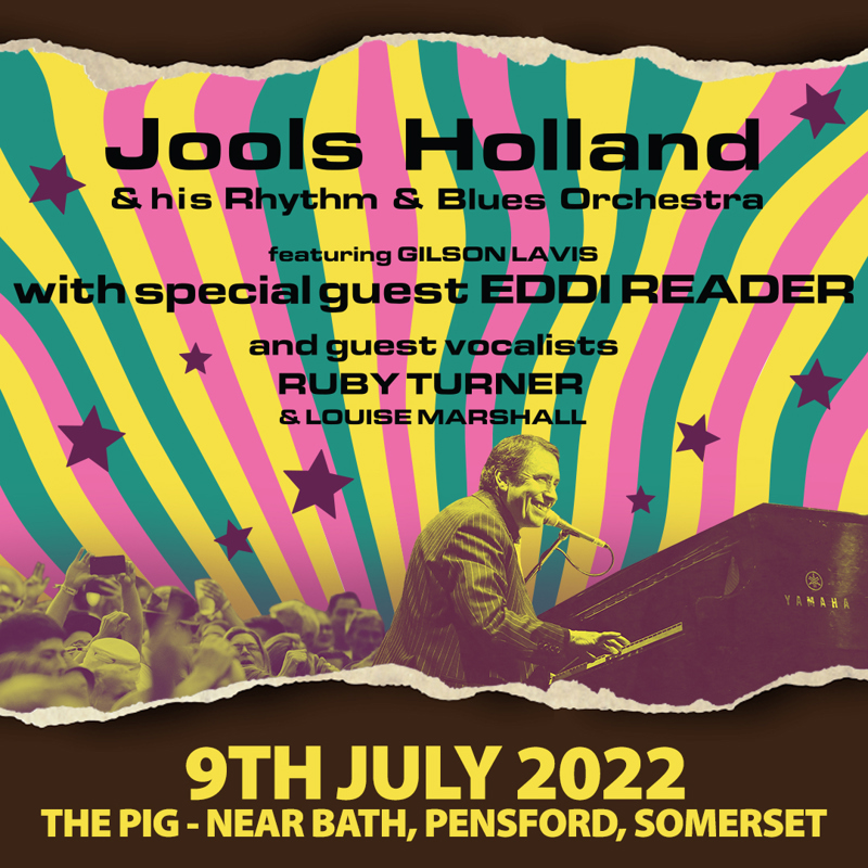 After headlining our festival at THE PIG-at Bridge Place last year, we are excited to welcome back Jools Holland & his Rhythm & Blues Orchestra to THE PIG-near Bath! Jools Holland OBE DL is an English pianist, bandleader, singer, composer, and broadcaster. He is known for being an original member of the band Squeeze and his work has seen him involved with many artists including Sting, Eric Clapton, Lulu, David Gilmour, Mark Knopfler, George Harrison, Kylie Minogue, Magazine, The Who and Bono. Listen here.