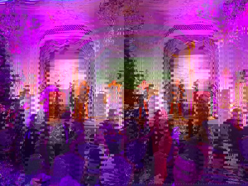 After a drink’s reception, we shuffled into the ballroom to our tables, and a two-minute silence commenced for Her Majesty, before tucking into a 3-course dinner whilst enjoying live music by Vesper - an electric string quartet.