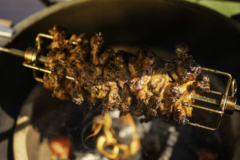 So, we’ve teamed up to create three exclusive recipes for an end of summer send-off using Big Green Egg’s brand-new Rotisserie 2.0 – starting with a smoky Chicken & Chorizo Kebab with Chilli Yoghurt.