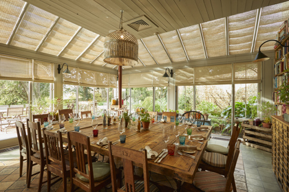 The Garden Room is packed with lived-in, homey furnishings and is the ultimate setting for bringing your favourite people around the table for supper!