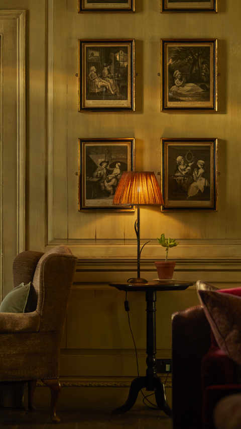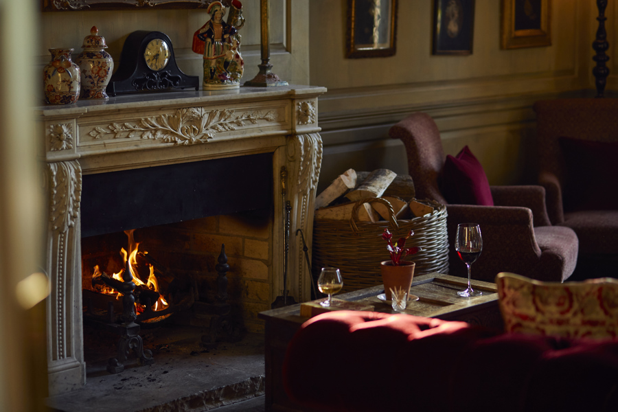 We have four sitting rooms - one of which houses our cosy panelled bar - and in each you'll find sofas positioned perfectly in front of roaring log fires.