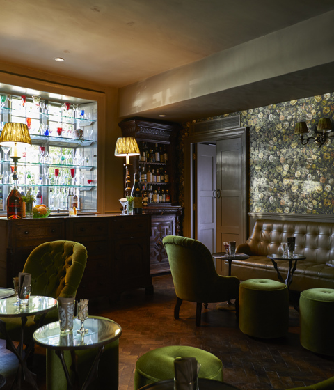 We have four sitting rooms - one of which houses our cosy panelled bar - and in each you'll find sofas positioned perfectly in front of roaring log fires.
