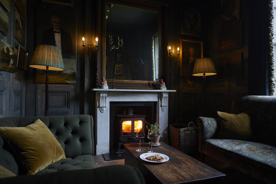 We have three sitting rooms - one of which houses our cosy panelled bar - and in each you'll find sofas positioned perfectly in front of roaring log fires.