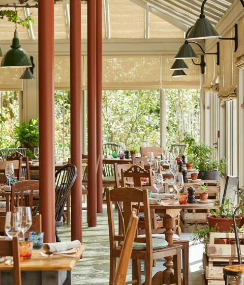 Tuck into our 25 mile menu at the restaurant in the heart of the house, or enjoy some outdoor eating on the terrace, with far-reaching views overlooking our very own southwest-facing vineyard.