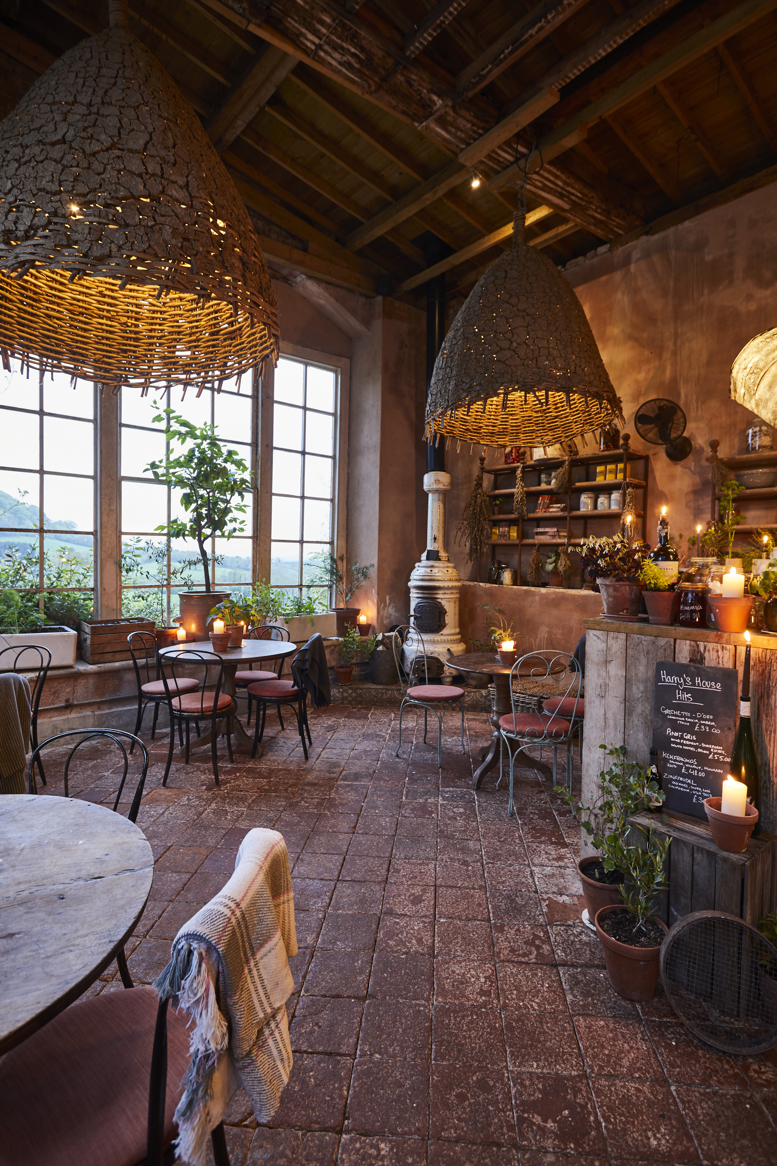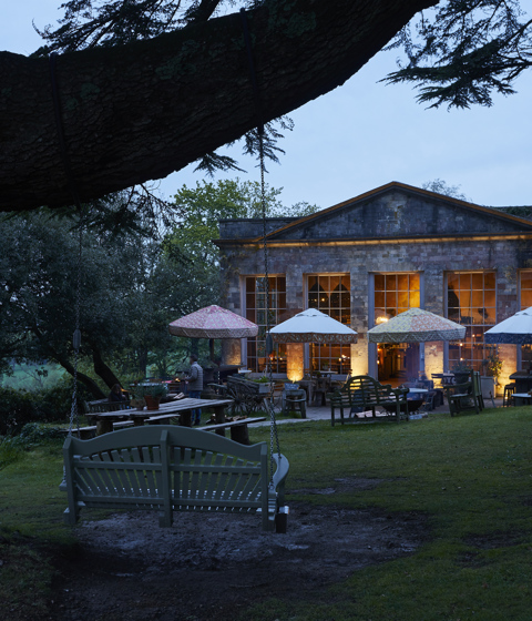 Tucked deep in the gardens, The Folly is our rustic hideaway with stripped back walls, floor to ceiling windows, and is full of reclaimed furniture. Sit down inside for a 3-course feasting menu, and spill out onto the flagstone terrace with views that are hard to beat!