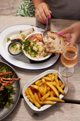 Our signature ‘Lobster & Rosé’ is a favourite - that's lobster, rosemary salt chips, and a chilled glass of Sugrue South Downs Rosé. But there’s plenty more to choose from, and the menu changes seasonally.