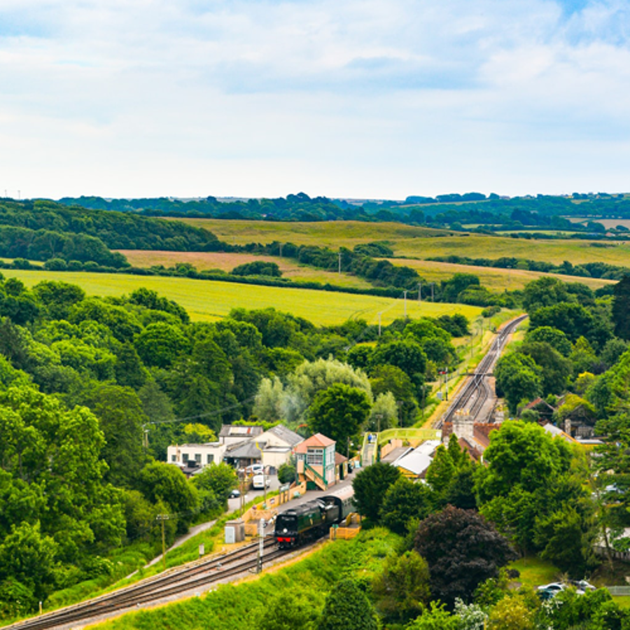 The heritage steam railway runs through the heart of Purbeck, linking Corfe Castle with the seaside town of Swanage.