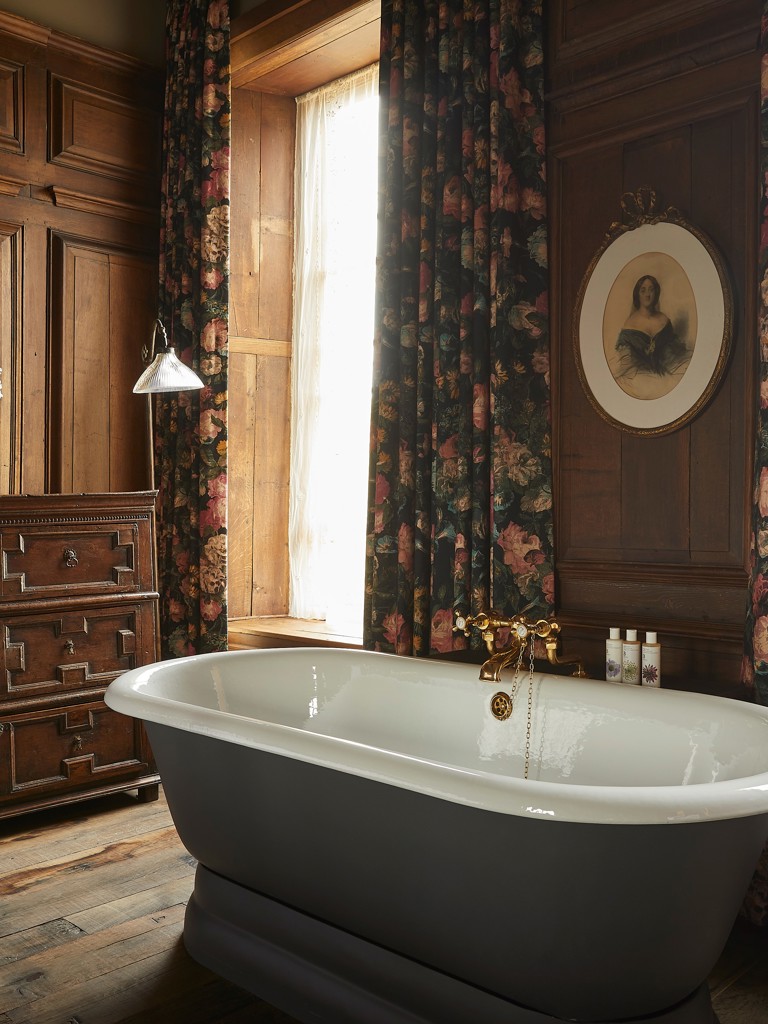 Our Big Comfy Luxe bedrooms are tucked in the main house and the coach house. Each one has a very comfortable super king-sized bed, a large walk-in monsoon shower and a freestanding roll top bath – some of which are in the bedroom. Some of the Big Comfy Luxe Rooms in the coach house are double height with mezzanine-level bathroom and overlook the beautiful water meadows.