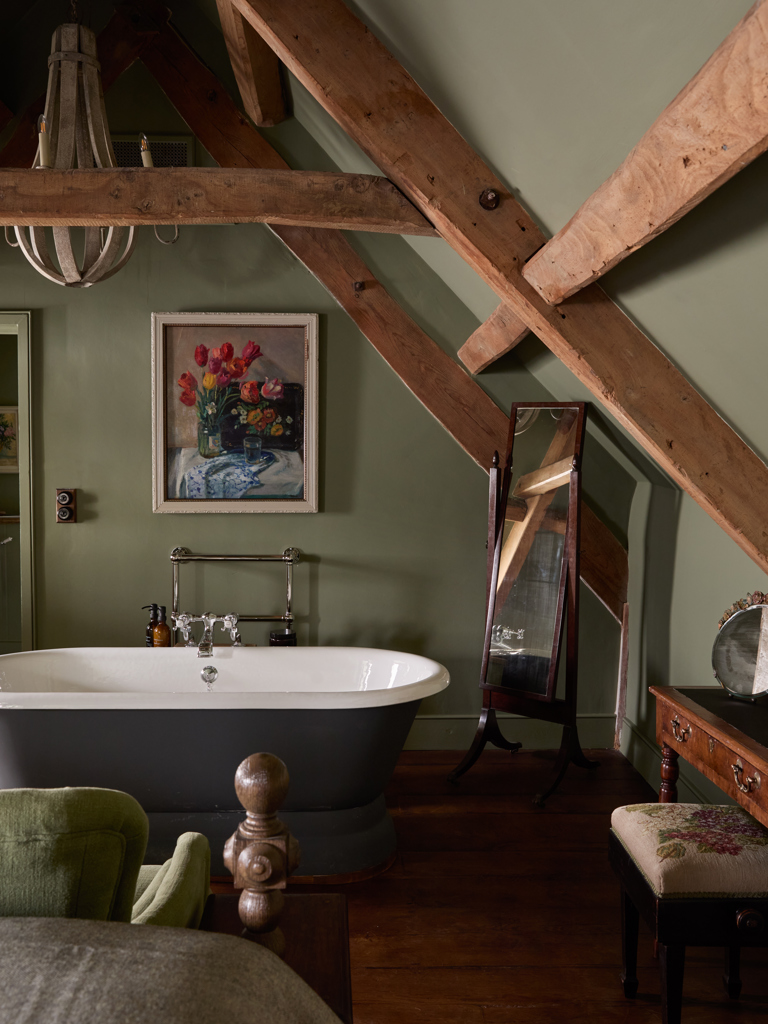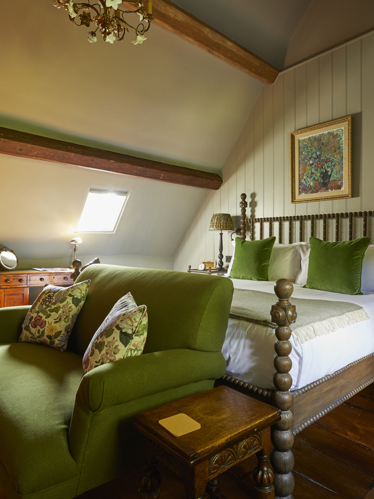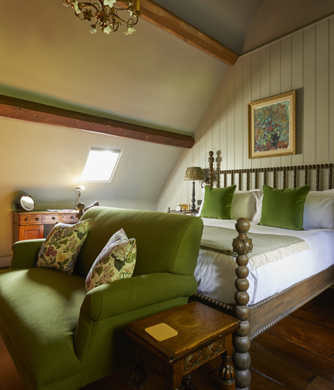 These very large bedrooms have really comfortable super-king beds and cosy separate seating areas, as well as very big bathrooms with a freestanding bath and monsoon shower. Some Big Comfy Luxe rooms have the bathtub in the bedroom, original features such as exposed beams, and views over the lovely green lawn at the front of the house.