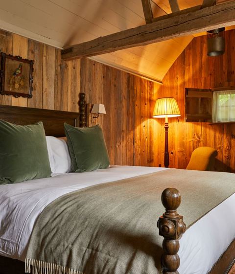The Chicken Shack is full of character with exposed beams and original features, including original stable partitioning. The bedroom, bathroom and sitting areas are on one level with a super king four-poster bed and freestanding roll top bath in the room – as well as a separate bathroom with a walk-in monsoon shower. The Chicken Shack also has its own little private outdoor terrace.