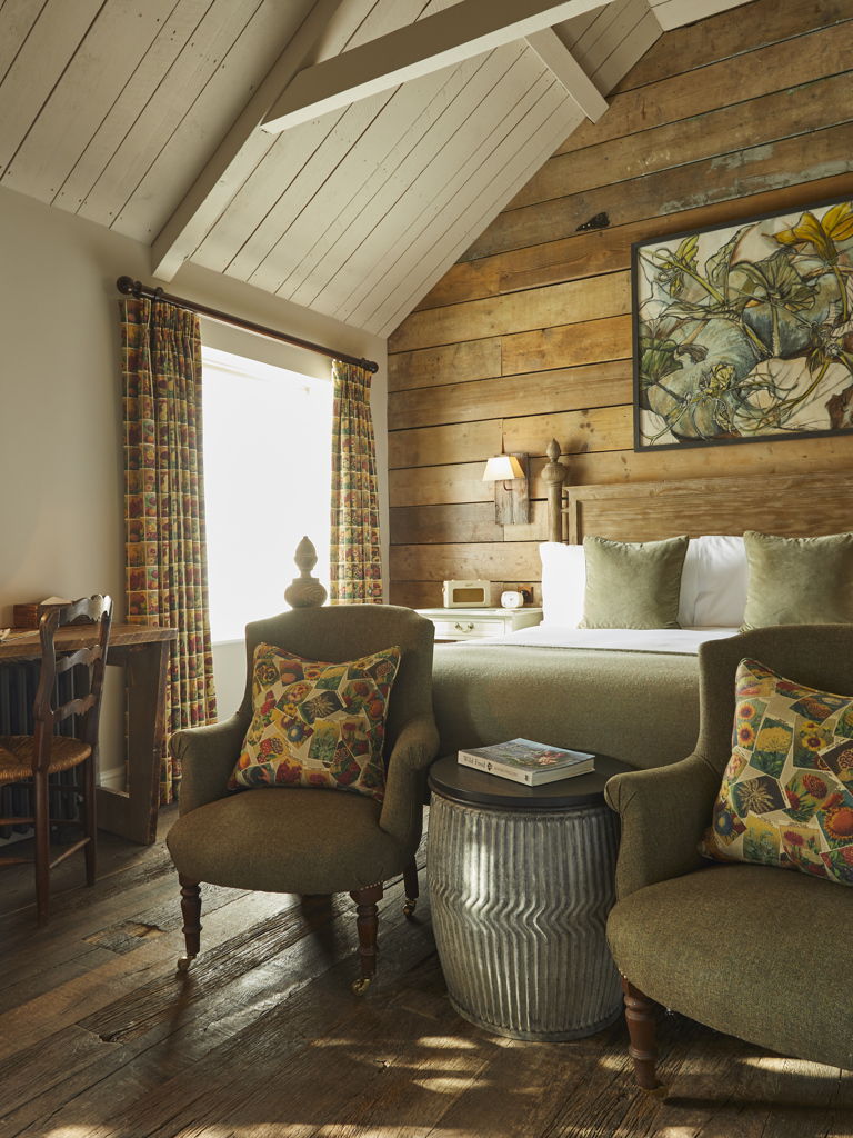 Our Big Comfy Luxe bedrooms are large rooms tucked in the main house, in the coach house or in the heart of the Kitchen Garden. Each bedroom has a large monsoon shower, a very comfortable super king-sized bed and a freestanding roll top bath – the Kitchen Garden rooms even have their own log burner in the bedroom, and a private outdoor terrace.