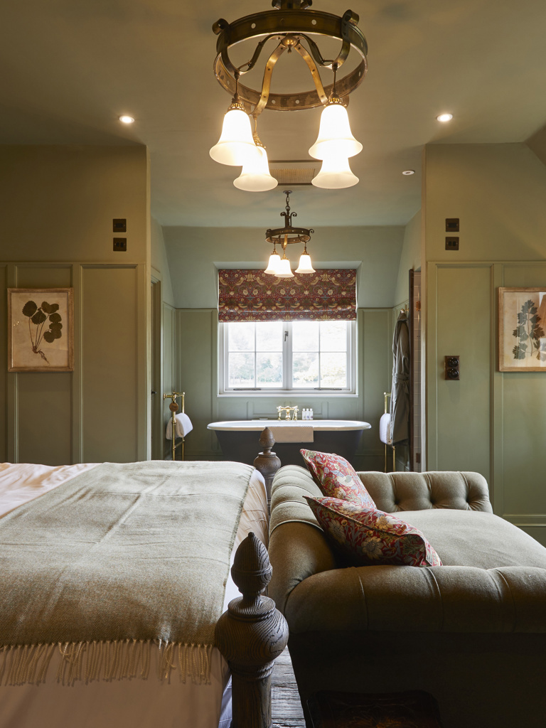 Comfy Luxe Rooms are tucked in the main house or coach house, each with a super king-sized bed, walk-in monsoon shower and freestanding roll top bath. The Comfy Luxe in the main house is a pretty special room on the top floor in the eaves, with views across the surrounding fields. Comfy Luxe Rooms in the coach house are just as spacious, nestled on the ground floor and the first floor – some even have mezzanine level bathrooms.