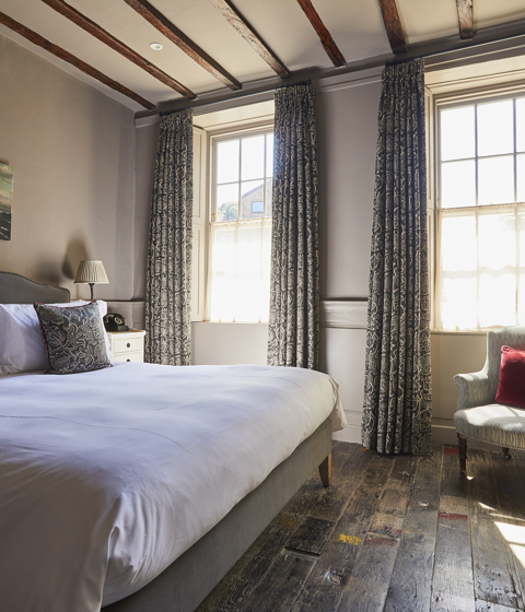 Our Comfy Rooms are large bedrooms with big cosy beds and unique features – each one is different in layout and character and filled to the brim with PIG charm. Some have original wooden flooring, original stone walls or fireplace settings. Each character-filled room has a large walk-in monsoon shower, plenty of cosy furnishings and lots of natural light.