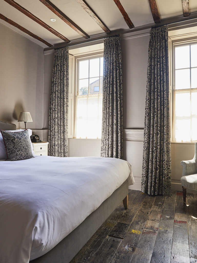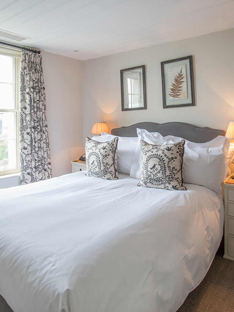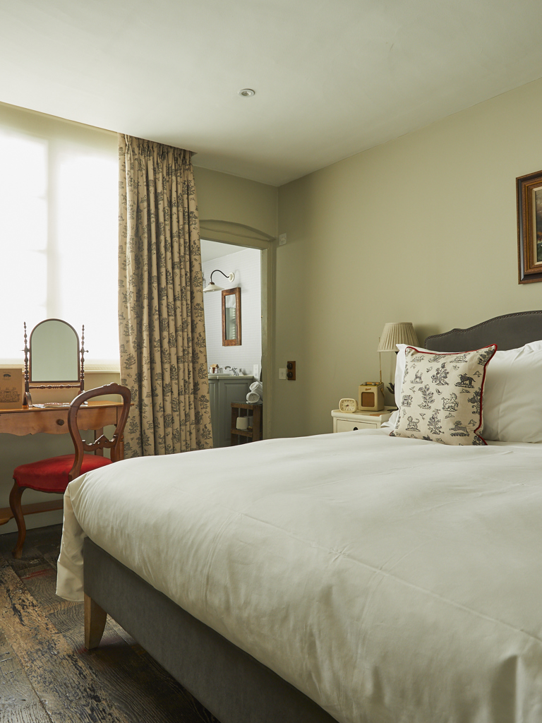Our Comfy Rooms are large bedrooms with big cosy beds and unique features – each one is different in layout and character and filled to the brim with PIG charm. Some have original wooden flooring, original stone walls or fireplace settings. Each character-filled room has a large walk-in monsoon shower, plenty of cosy furnishings and lots of natural light.