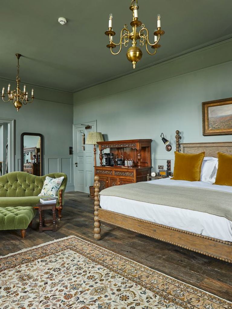 This really spacious bedroom is flooded with natural light with dual aspect windows, high ceilings and unbelievable views out across our vineyard and the rolling South Downs. Sink into the super king four-poster bed, make yourself at home with the huge walk-in wardrobe and, when it comes to bathing, enjoy the very large open plan bathroom with an "avocado" freestanding roll top bath and walk-in monsoon shower.