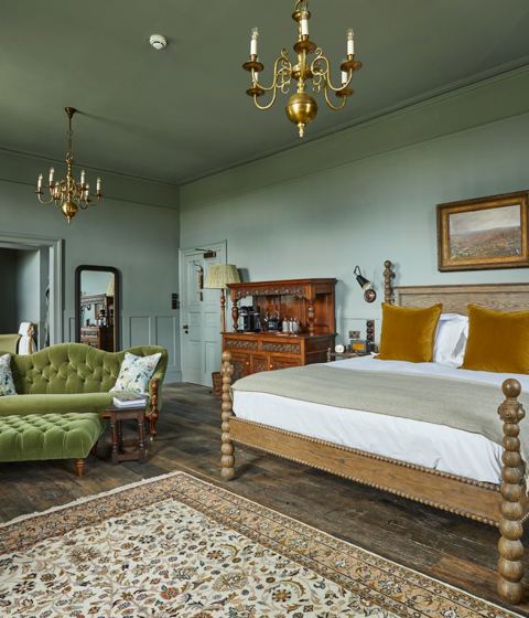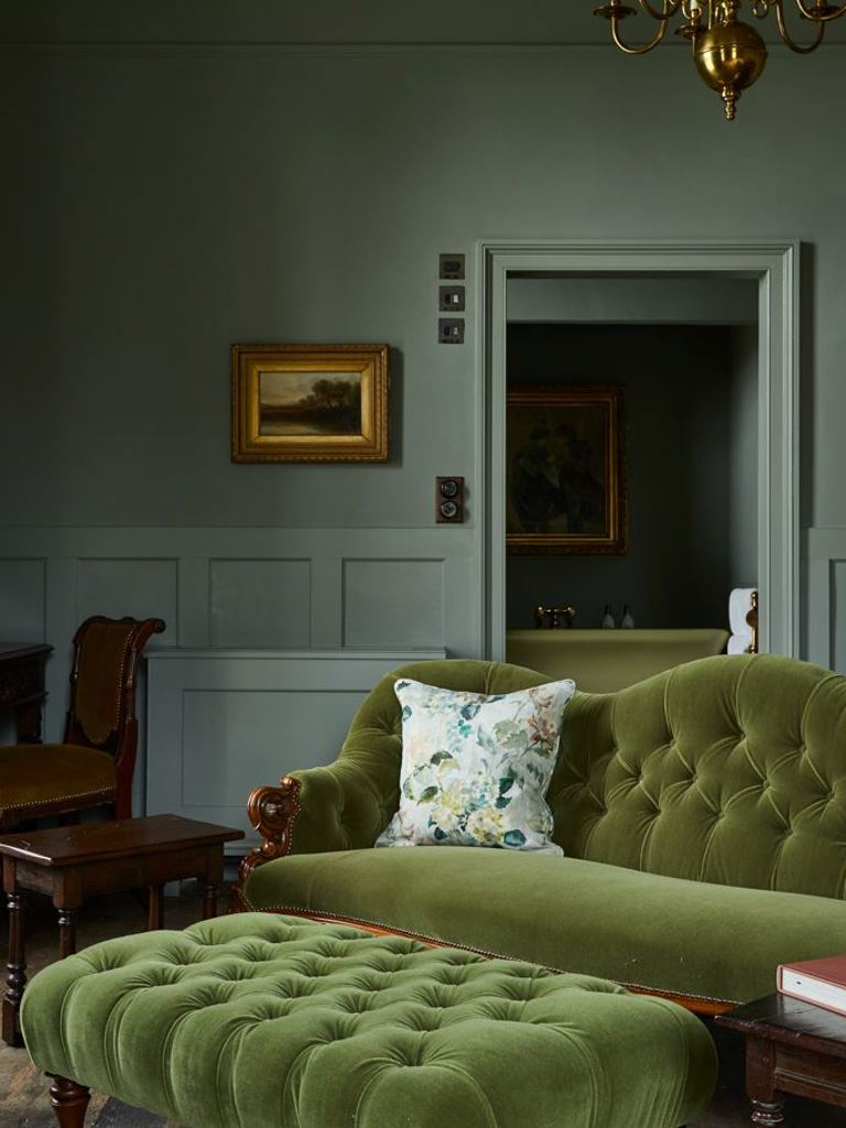 This really spacious bedroom is flooded with natural light with dual aspect windows, high ceilings and unbelievable views out across our vineyard and the rolling South Downs. Sink into the super king four-poster bed, make yourself at home with the huge walk-in wardrobe and, when it comes to bathing, enjoy the very large open plan bathroom with an "avocado" freestanding roll top bath and walk-in monsoon shower.