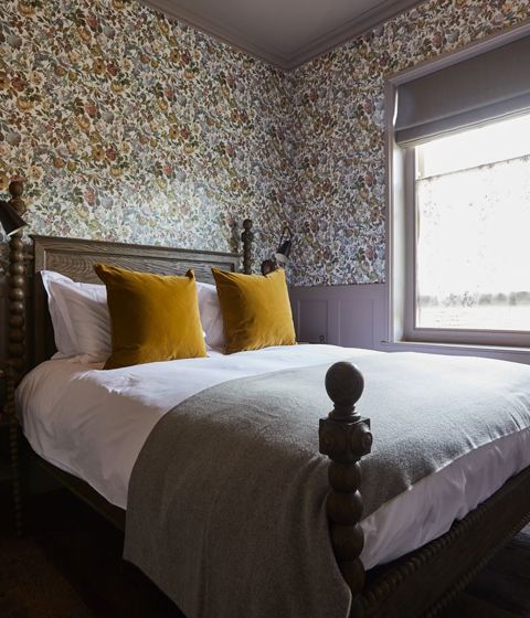 Our smallest bedroom is quiet and cosy, with heaps of character, tucked away in the main house with views out across the Kitchen Garden and grounds. It has a super comfy bed and a separate bathroom with a walk-in monsoon shower – everything you need for a great night’s rest.