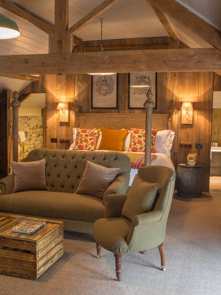 Nestled in the stable yard, tucked away beside the main house, our Family Rooms are super cosy, spacious retreats to hunker down in. The main bedroom has a very comfortable king size four-poster bed with a freestanding roll top bath and walk-in monsoon shower in the bathroom. The cosy, separate bunk bedroom has its own smaller monsoon shower room, for a really relaxed, spacious stay for four of your favourite people.