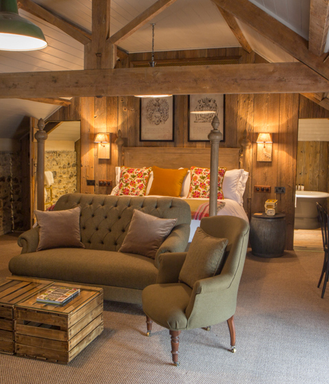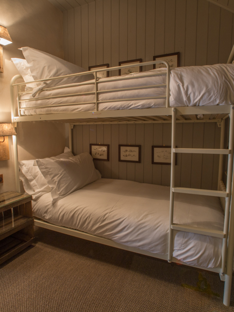 Nestled in the stable yard, tucked away beside the main house, our Family Rooms are super cosy, spacious retreats to hunker down in. The main bedroom has a very comfortable king size four-poster bed with a freestanding roll top bath and walk-in monsoon shower in the bathroom. The cosy, separate bunk bedroom has its own smaller monsoon shower room, for a really relaxed, spacious stay for four of your favourite people.