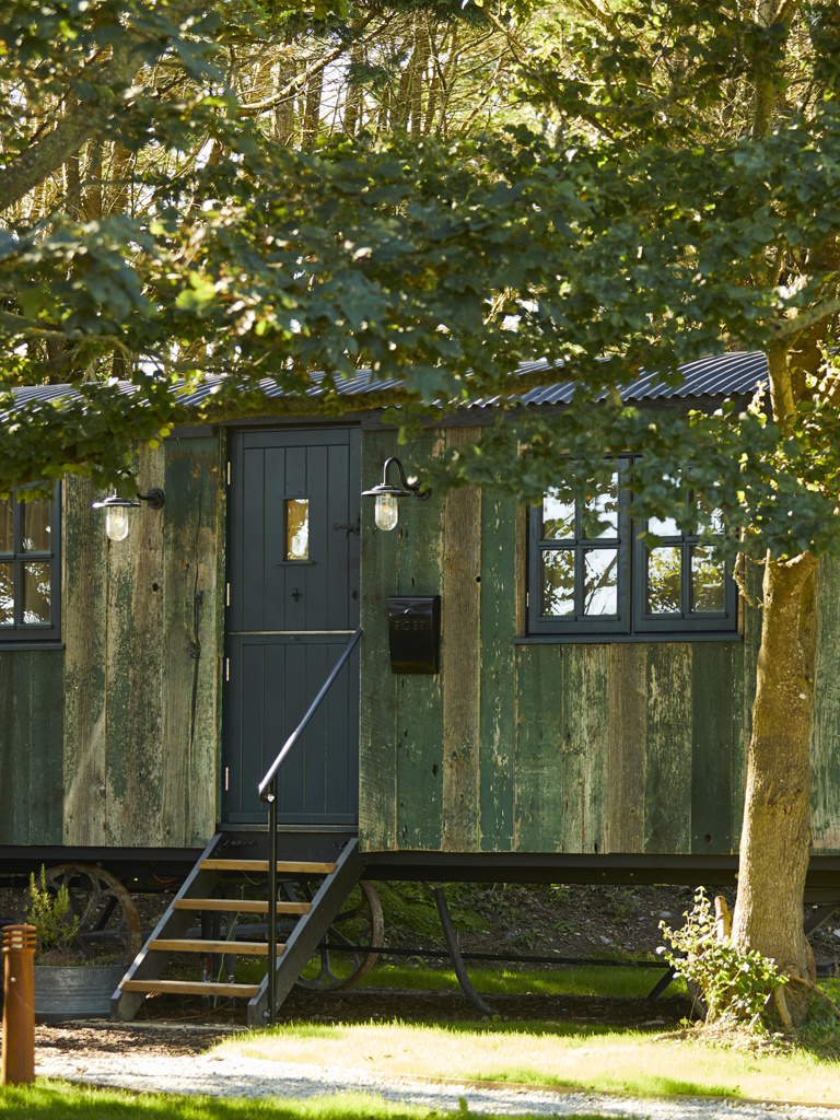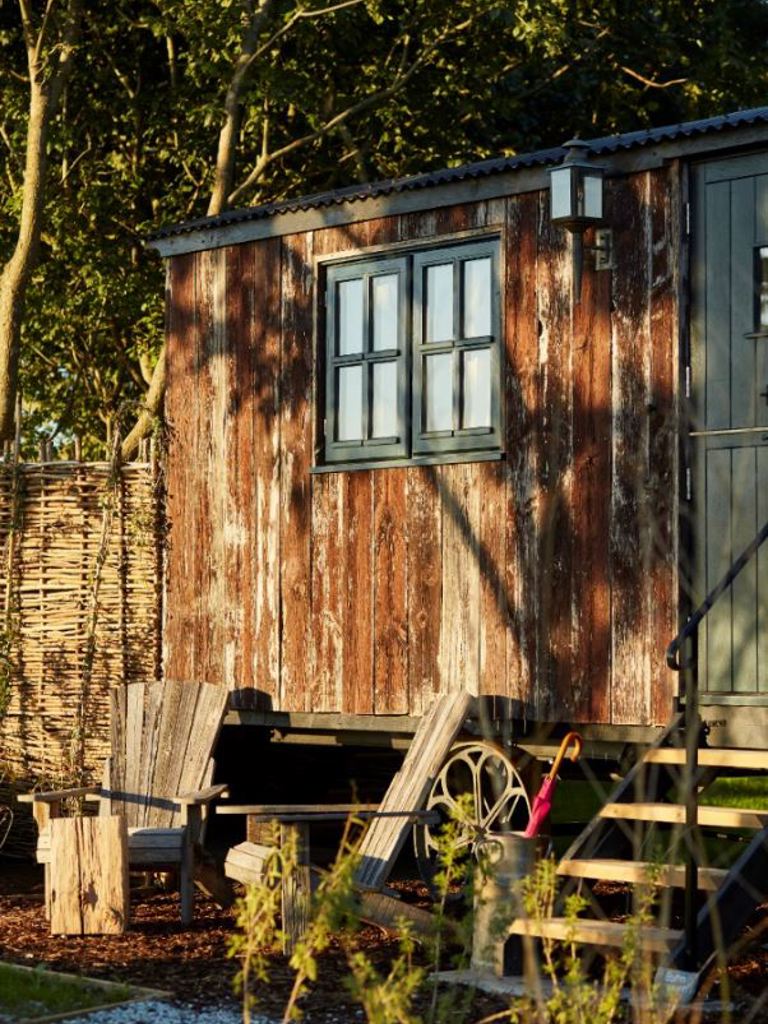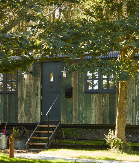 Packed with all the comforts of a bedroom in the main house, these bespoke romantic wagons are tucked away around the veg patches with views out across the gardens and fields. Full of rustic reclaimed wood and texture, cosy furnishings and each with its own log burner and sofa to snuggle up on, these Wagons have king-sized beds and en-suite bathrooms with monsoon showers, freestanding baths and bags of space for two. They also have their own private terraces and private outdoor showers for alfresco showering.