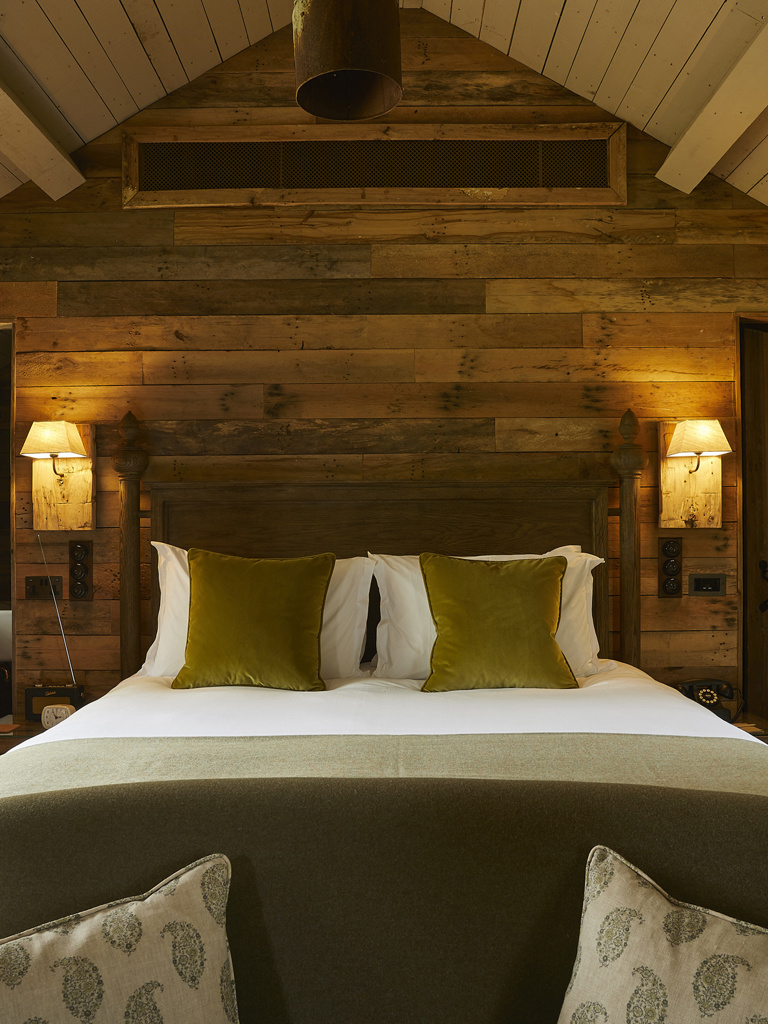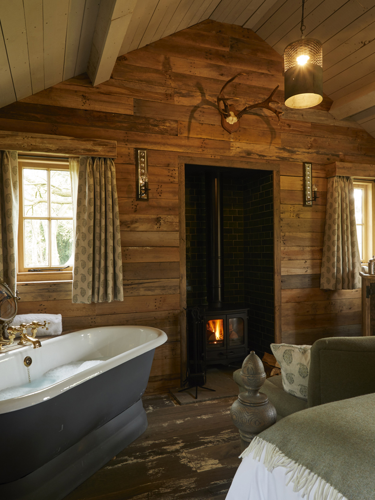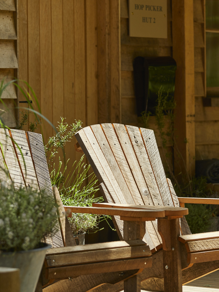 ...and secluded in the water meadows, our seven Hop Pickers’ Huts are a super special addition to THE PIG-at Bridge Place. Full of reclaimed, rustic wood, cosy furnishings and each with its own log burner and freestanding roll top bath in the bedroom, these Huts are made for adventurous escapes for two. Each Hut has a very comfy super king-sized bed, a monsoon shower bathroom and an outdoor seating area on the front porch overlooking the beautiful grounds.