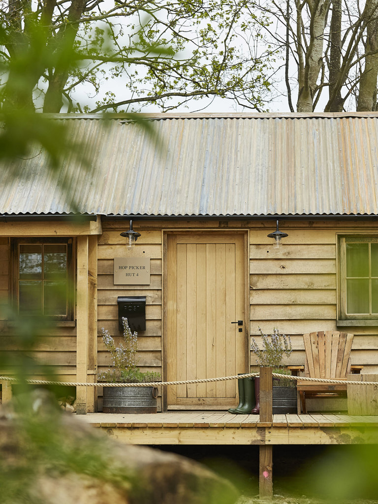 ...and secluded in the water meadows, our seven Hop Pickers’ Huts are a super special addition to THE PIG-at Bridge Place. Full of reclaimed, rustic wood, cosy furnishings and each with its own log burner and freestanding roll top bath in the bedroom, these Huts are made for adventurous escapes for two. Each Hut has a very comfy super king-sized bed, a monsoon shower bathroom and an outdoor seating area on the front porch overlooking the beautiful grounds.