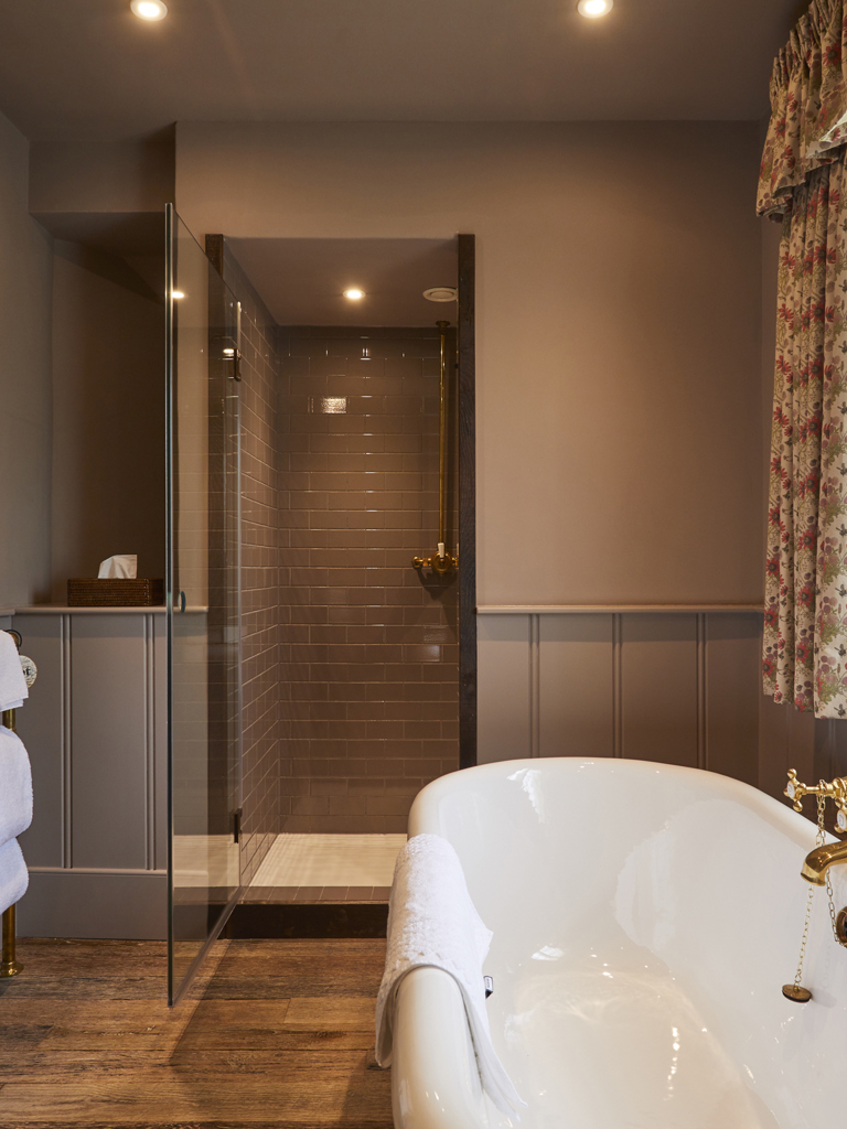 Perfect for family getaways, Lodge 2 has a fully functioning kitchen with a family-sized kitchen table and a cosy sitting room with a log burner to gather around. Upstairs, you’ll find the master bedroom with its own en-suite bathroom and freestanding roll top bathtub, as well as the second bunk-bed room with views out across the quaint village of Bridge.