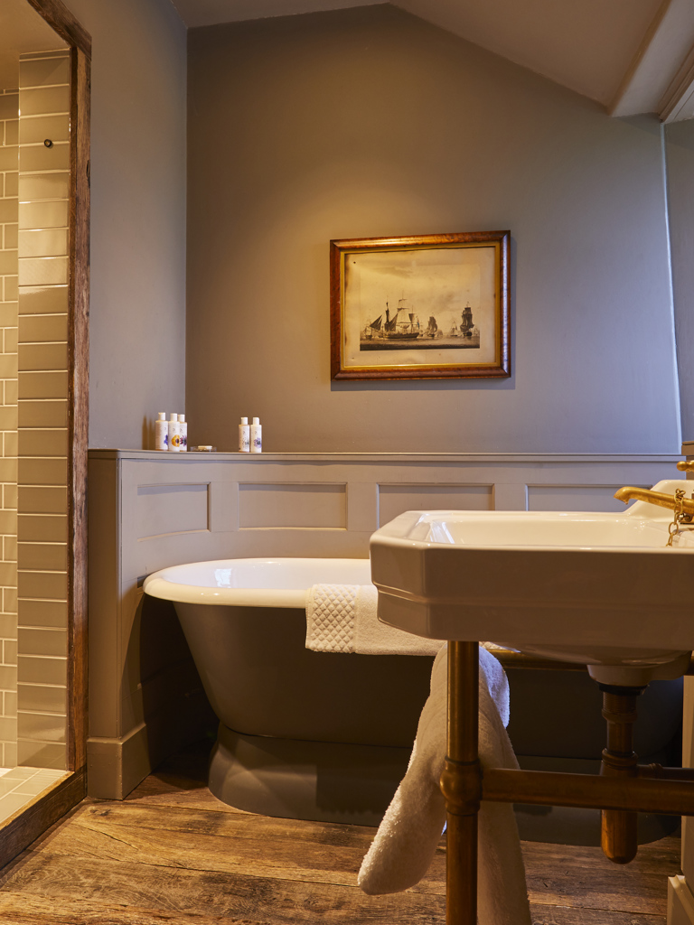 This gorgeous large bedroom is nestled in the main house, with views out over the garden to the headland, Harlyn Bay and the North Cornwall coastline (it’s how it got its name, The Lookout!). This very comfortable room has a four-poster bed, large monsoon shower and a freestanding roll top bath in the bathroom window to make sure you can soak up the very best of the views.