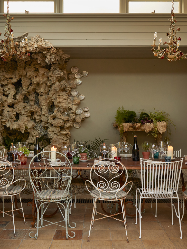 Rosemary’s Hideaway has its own private outdoor entrance tucked away at the back of the house beside the original ornamental gardens. This really special room has a large, separate lounge with very comfy areas to relax in and a separate dining area with an original shell grotto underneath a sunroof to gather 12 of your favourite people together. You’ll have your own private outdoor space to relax in, and a separate bedroom with a very comfortable super king-sized bed to retreat to.