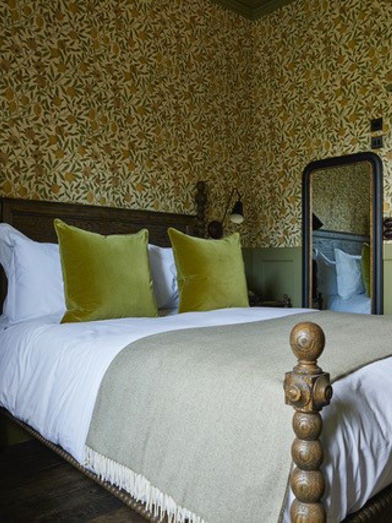 This cosy double room is nestled in the main house with a really comfy, four-poster king-sized bed and views out to the orchard and the Kitchen Garden. There is a sliding stable door to the separate bathroom that holds a big walk-in monsoon shower.