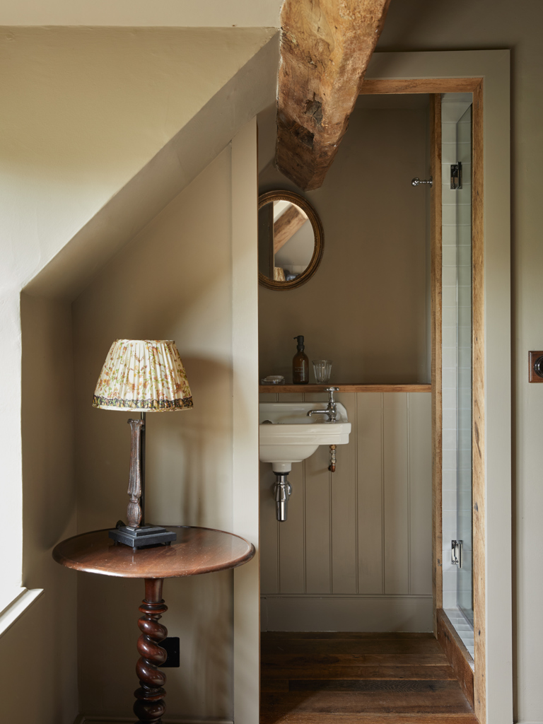 The snug is a comfortable hideaway that’s perfect for two people sharing. Packed with original features, the Snug has exposed beams, an open plan layout and very cosy twin beds with views out to Rosemary Verey’s arts and crafts style gardens at the back of the house. There is a big monsoon shower in the bathroom – everything you need for a great night’s rest.
