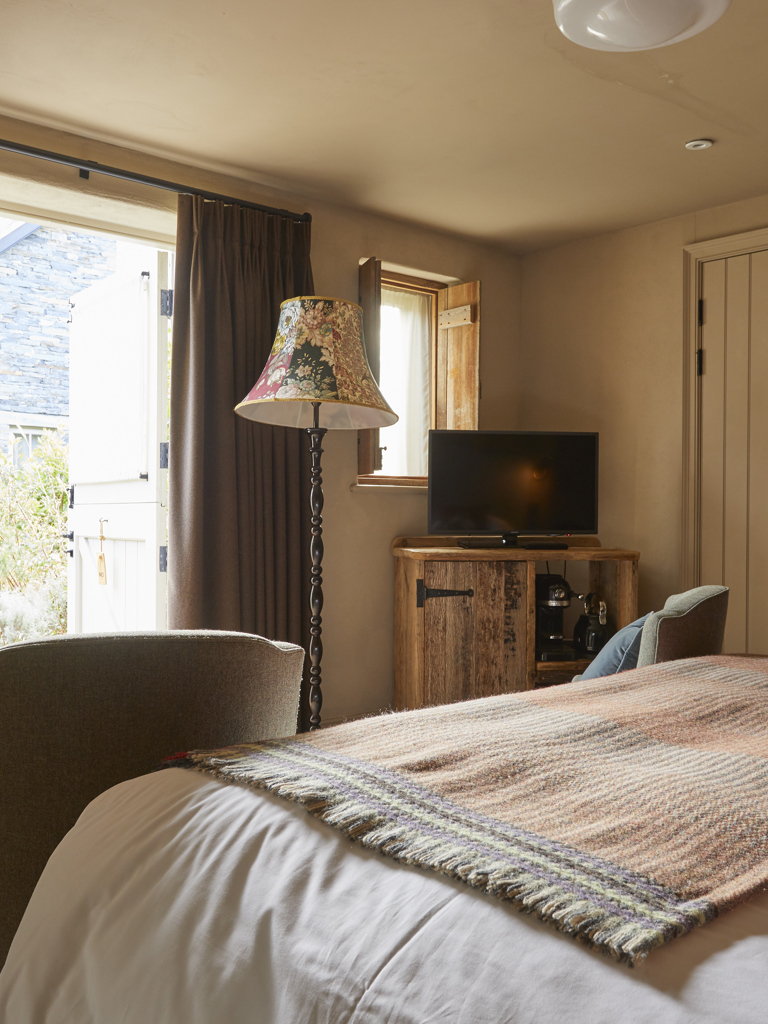 Our Snug Rooms are cosy ground floor bedrooms in the Stonehouse (quite literally a stone’s throw from the main house!) with their own private outdoor terrace in the courtyard and views out to the surrounding grounds. Inside, you’ll find a super comfy double bed that can be made into two twin-sized beds, and a separate bathroom with a monsoon shower.
