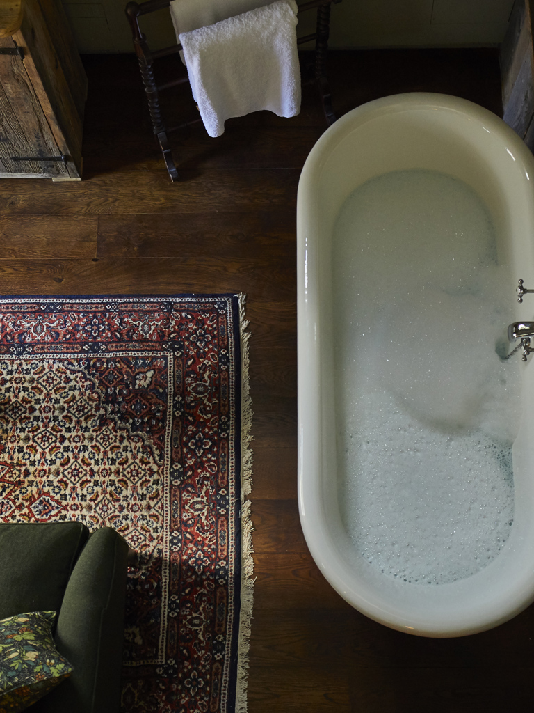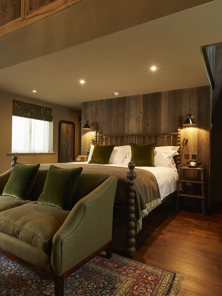 Our secluded Stableyard is just a few steps away from the main house and is home to our very own duplex-style bedrooms that are just perfect for two. Each bedroom has its own private outdoor access with all the familiar rustic and welcoming furnishings of THE PIG waiting for you on the inside. You’ll find the “walk-in” master bedroom with a super king-sized bed on the ground floor, and a separate lounge area with cosy chairs to snuggle up in. Upstairs, you’ll find your large monsoon shower and freestanding rolltop bath.