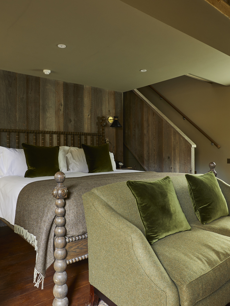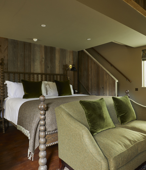 Our secluded Stableyard is just a few steps away from the main house and is home to our very own duplex-style bedrooms that are just perfect for two. Each bedroom has its own private outdoor access with all the familiar rustic and welcoming furnishings of THE PIG waiting for you on the inside. You’ll find the “walk-in” master bedroom with a super king-sized bed on the ground floor, and a separate lounge area with cosy chairs to snuggle up in. Upstairs, you’ll find your large monsoon shower and freestanding rolltop bath.