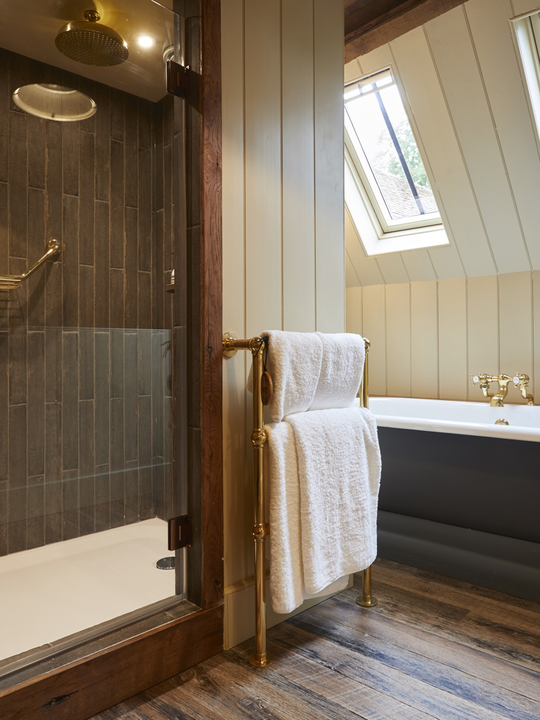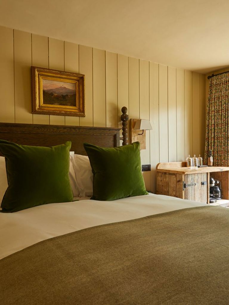 The Tack Room is a super cosy, quirky retreat in the Stable Yard with its own entrance and a small, private terrace set over two floors. The homey bedroom is downstairs with a very comfy king-sized bed and the bathroom is upstairs with a freestanding roll top bath and walk-in monsoon shower. It also has its own private outdoor terrace – the perfect, peaceful spot for a night cap under the Dark Sky Reserve.