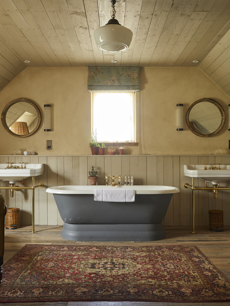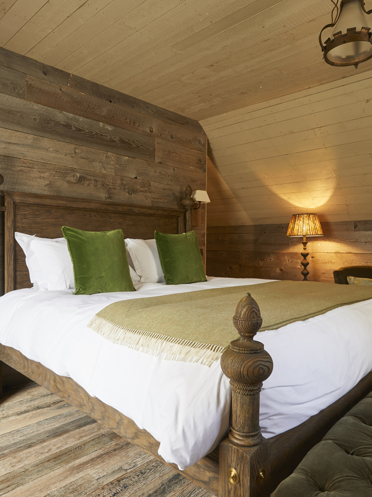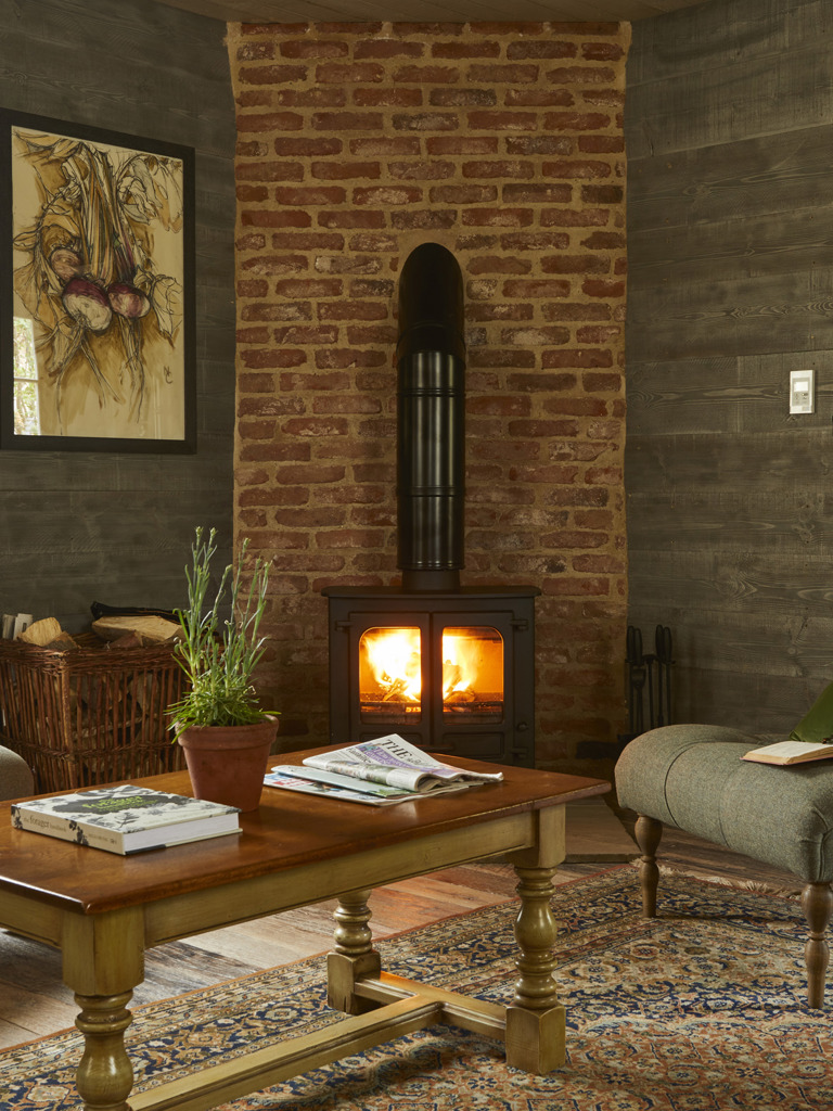 The Barn is a huge upstairs-downstairs, two-person rustic bedroom converted from the old stable block in the grounds. Quadruple aspect with far-reaching views over the water meadows and the Kitchen Garden, with lots of rough cast plaster and reclaimed timber. Downstairs, you’ll find a cosy sitting room with a log burner, while the master bedroom and very spacious bathroom await you upstairs with a freestanding roll top bath and large monsoon shower.
