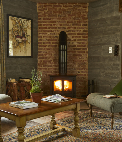 The Barn is a huge upstairs-downstairs, two-person rustic bedroom converted from the old stable block in the grounds. Quadruple aspect with far-reaching views over the water meadows and the Kitchen Garden, with lots of rough cast plaster and reclaimed timber. Downstairs, you’ll find a cosy sitting room with a log burner, while the master bedroom and very spacious bathroom await you upstairs with a freestanding roll top bath and large monsoon shower.