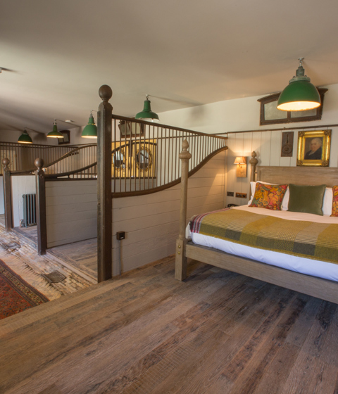 Located on the ground floor of the stable yard, the old original Horsebox still has the stable partitions, paved flooring and other quirky features still in-tact. You'll find a super king-sized four-poster bed, a separate cosy lounge area and a freestanding roll top bath in the main room, as well as a walk-in monsoon shower in your separate bathroom. With plenty of space to unwind in, we can guarantee you’ve never stayed in a hideaway quite like this!