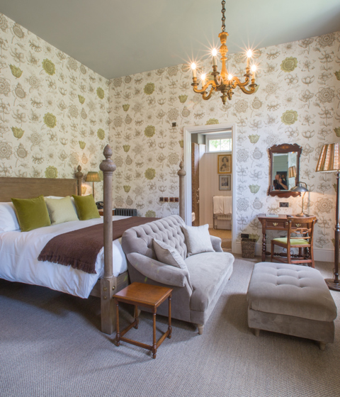 Tucked away on the first floor of the main house, The Laundry is packed with heaps of original and unique features – from the separate, large lounge area, small private outdoor garden and a big circular copper bathtub in the bathroom with a large monsoon shower above. With several cosy seating areas to choose from, and a seriously comfy super king-sized four-poster bed to sink into, you’re never far from a calm, cosy space to switch-off in, in the heart of the countryside.